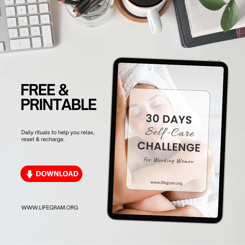 Take charge of your wellbeing with this beautifully designed 30-Day Self-Care Challenge tailored for working women. Each day offers a simple, achievable self-care activity to help you relax, reset, and reconnect — even during the busiest weeks.